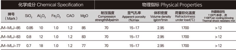 主要特點:產(chǎn)品具有耐崩裂,熱震穩(wěn)定性好。